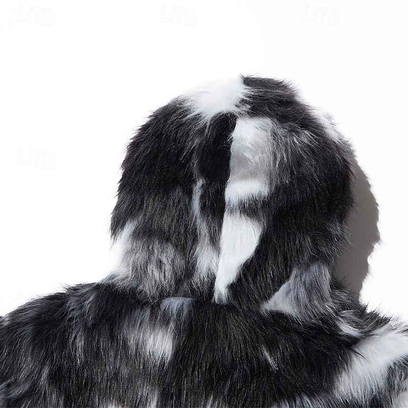 Men's Winter Jacket Casual Jacket Faux Fur Coat Vacation Daily Thermal Warm Pocket Fur Winter Leopard Print Fashion Streetwear Hooded Regular Black Jacket 7
