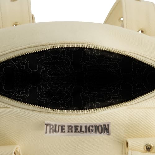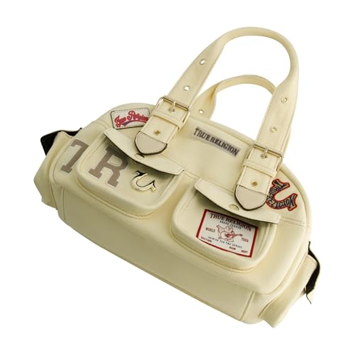 HOT ! True Religion Satchel Bag, Multi-Patch Women's Handbag with Adjustable Shoulder Strap, Beige, One Size