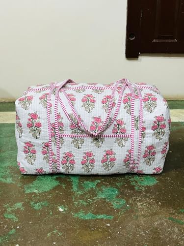 HOT ! Vintage Cotton Overnight Bag, Print Floral Quilted Shoulder Travel Bag, Boho Beach DuffleBag, Custom Weekender Bag, Groomsmen Gift, Tote Bag (24x12x12")