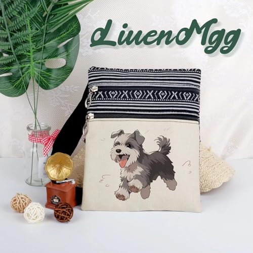 HOT ! Running Schnauzer Messenger Bag Small Ethnic Pattern Printed Adjustable Strap Crossbody Zipper Bag Running Schnauzer Phone Bag Wallet Cute Shoulder Handbag for Women Friends