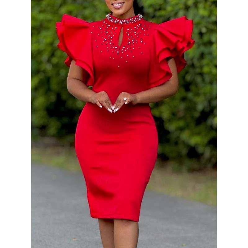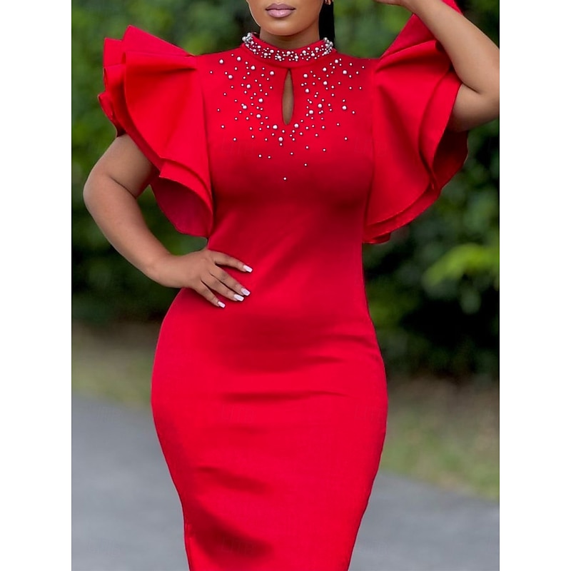 More information about Women's Midi Dress Prom Dress Party Dress Satin Dress Wedding Guest Dress Elegant Formal Party Wedding Guest Engagement Regular Fit Plain Short Sleeve Turtleneck Black White Pink Red Summer Spring