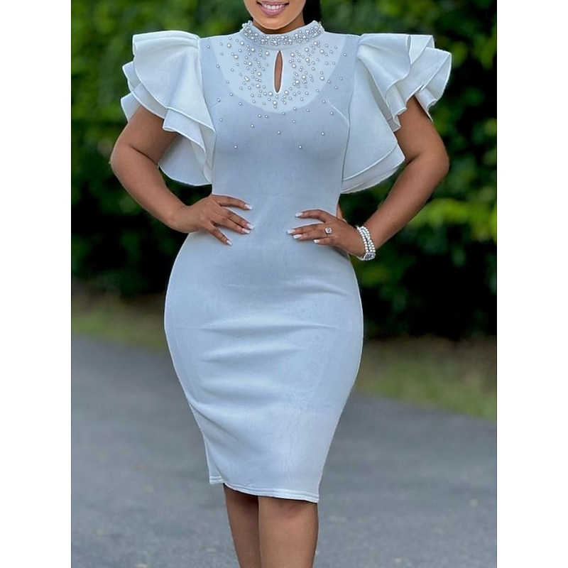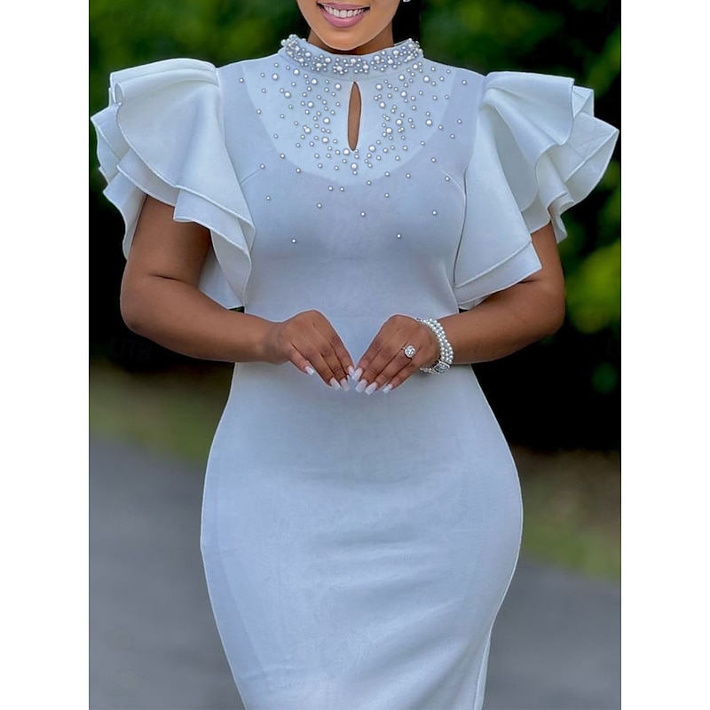 HOT ! Women's Midi Dress Prom Dress Party Dress Satin Dress Wedding Guest Dress Elegant Formal Party Wedding Guest Engagement Regular Fit Plain Short Sleeve Turtleneck Black White Pink Red Summer Spring