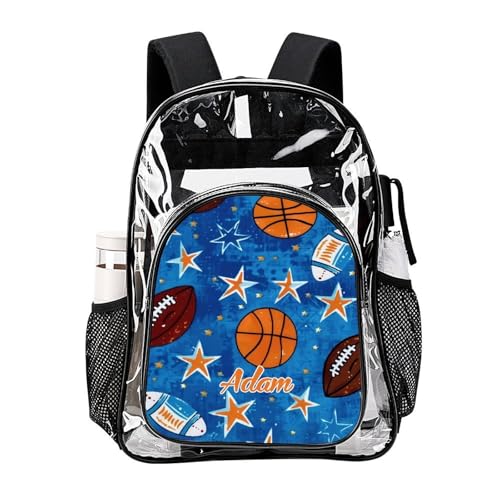 Personalized Clear Backpacks with Name, Custom Ball PVC Transparent Backpacks with Reinforced Strap for Boys Girls Back to School Gifts 1
