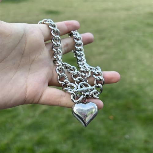 More information about Stainless Steel Puffy Heart Pendant Statement Chunky Toggle Necklace for Women Thick Statement Chain Link Necklaces
