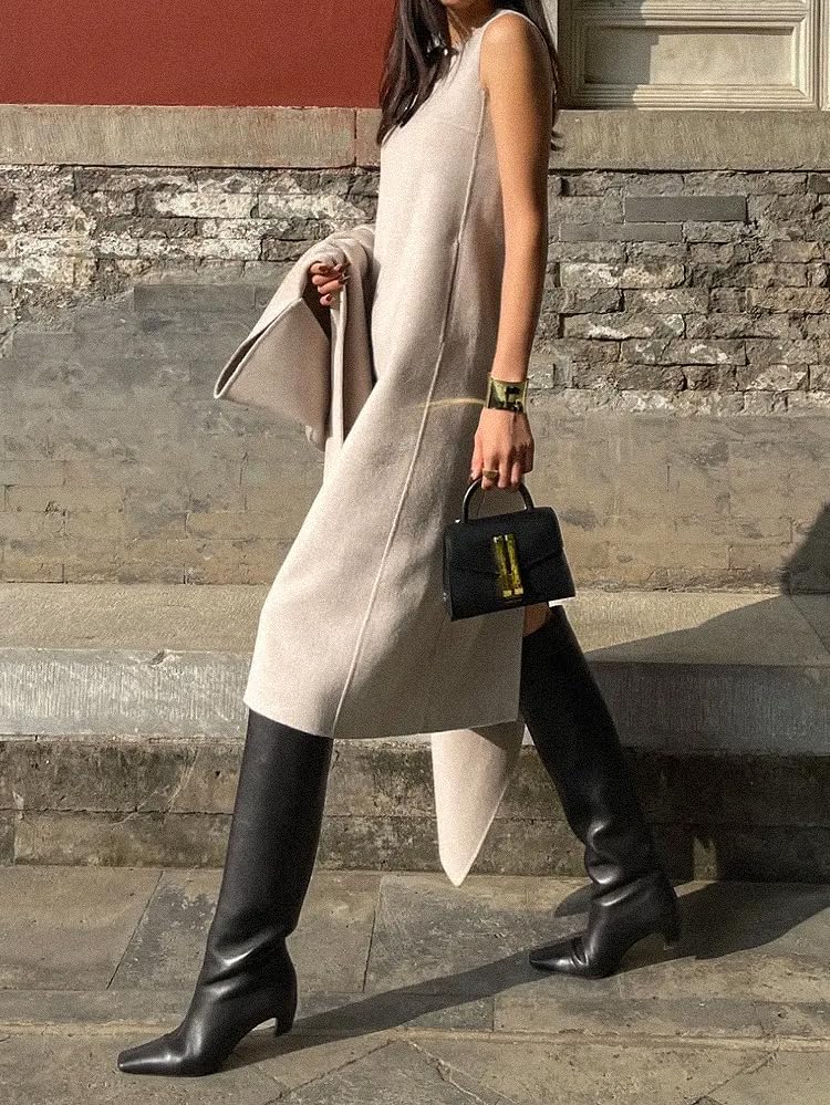 More information about Women Black Knee High Boots Square Toe Low Heel Tall Boots