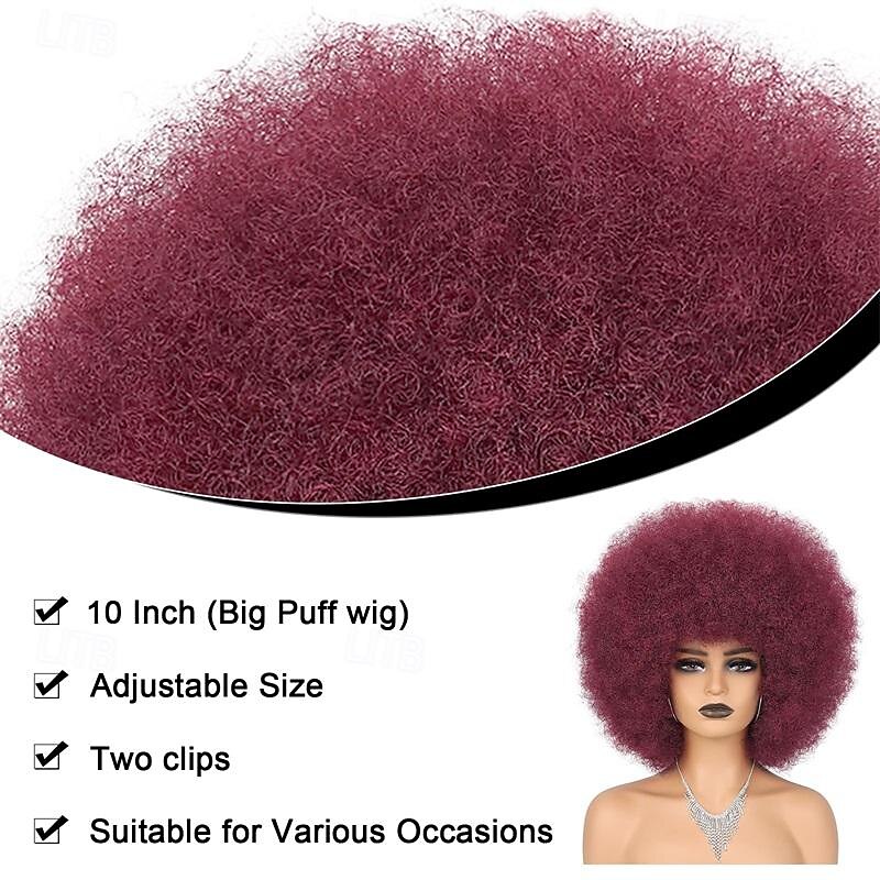 Hair Red Afro Wigs for Black Women Glueless Wear and Go Wig 10 Inch Curly Afro Wigs Burgundy Synthetic Puff Wigs for Daily Party Cosplay Costume Hallowee Use Halloween Wigs 15