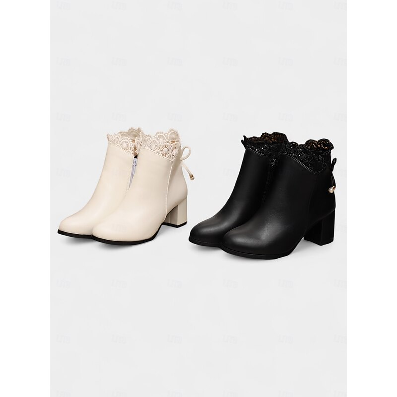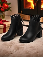 Women's Black Faux Leather Ankle Boots with Pearl Charm and Block Heel – Elegant Winter Short Booties for Ladies, Perfect for Office, Streetwear & Daily Outfits 12