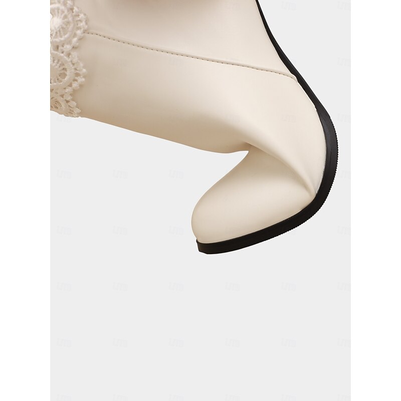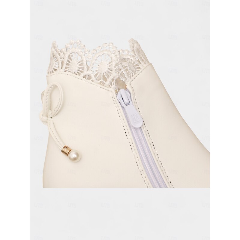 Women's Black Faux Leather Ankle Boots with Pearl Charm and Block Heel – Elegant Winter Short Booties for Ladies, Perfect for Office, Streetwear & Daily Outfits 10