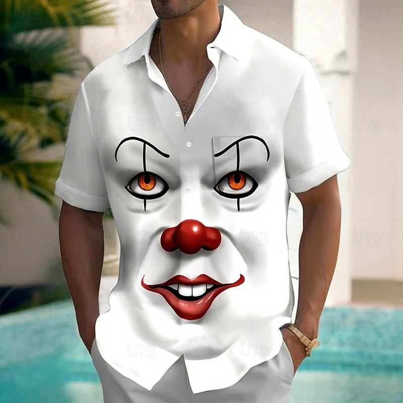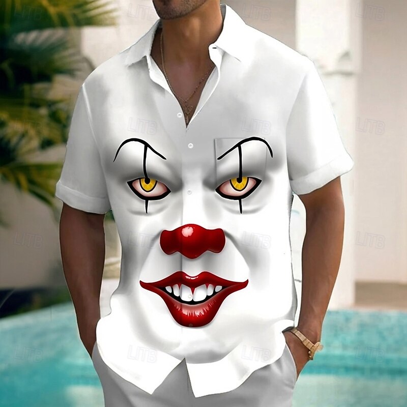 $23.99 - Men's Creepy Clown Funny Clown Shirt Summer Shirt Button Up Shirt Short Sleeve Fashion Casual Outdoor Vacation Dailywear Summer Spring Turndown 3D Print Collared Shirts Front One Pocket White 1 White 2025. Shop for cheap Halloween Shirts online? Buy at lightinthebox.com on sale today!