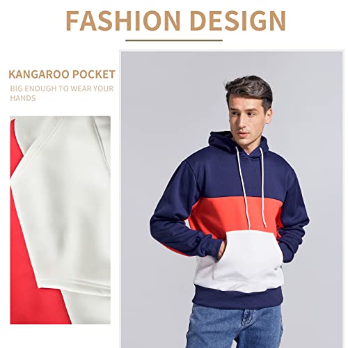 HOT ! Rusaevon Men's Fleece Pullover Hoodie Sweatshrits Drawstring Hooded Color Block Hoody for Men with Kangaroo Pocket