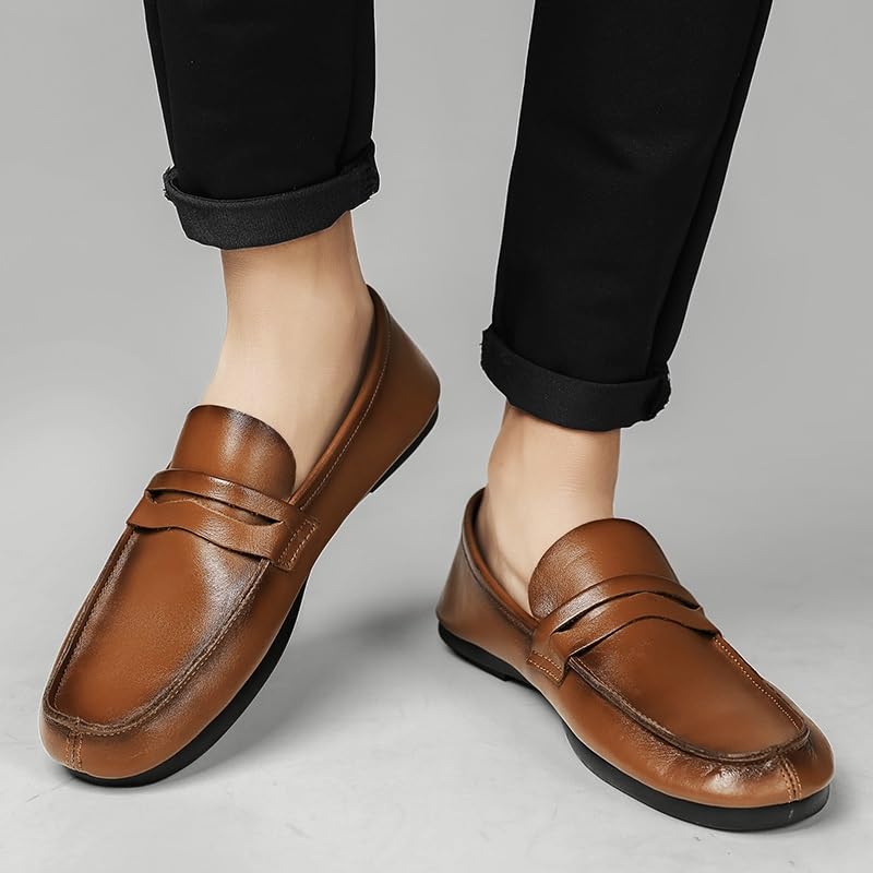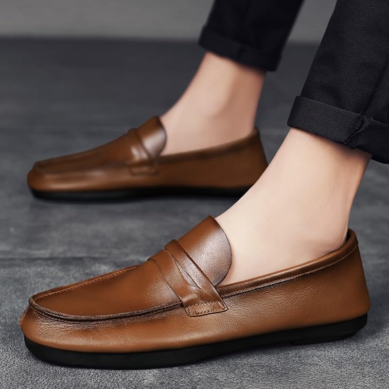 Mens Loafers Shoe Round Toe Split Toe Solid Color Leather Penny Loafers Comfortable Lightweight Flexible Classic Party Slip-ons 6