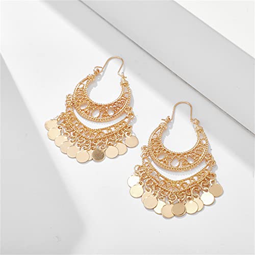 HOT ! coadipress Filigree Cut-out Dangling Chandelier Earrings for Women Bohemian Retro Gold Chandelier Tassel Drop Earrings Ethnic Gypsy Beads Tassel Earrings Jewelry Gifts