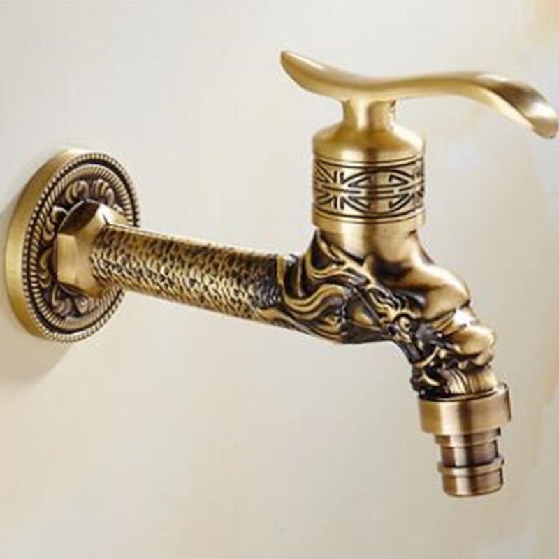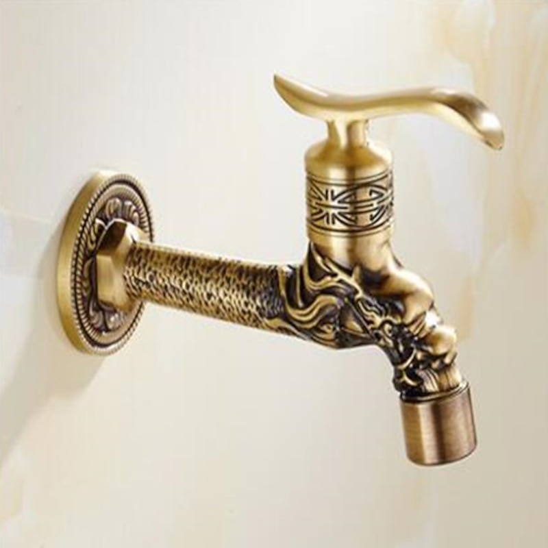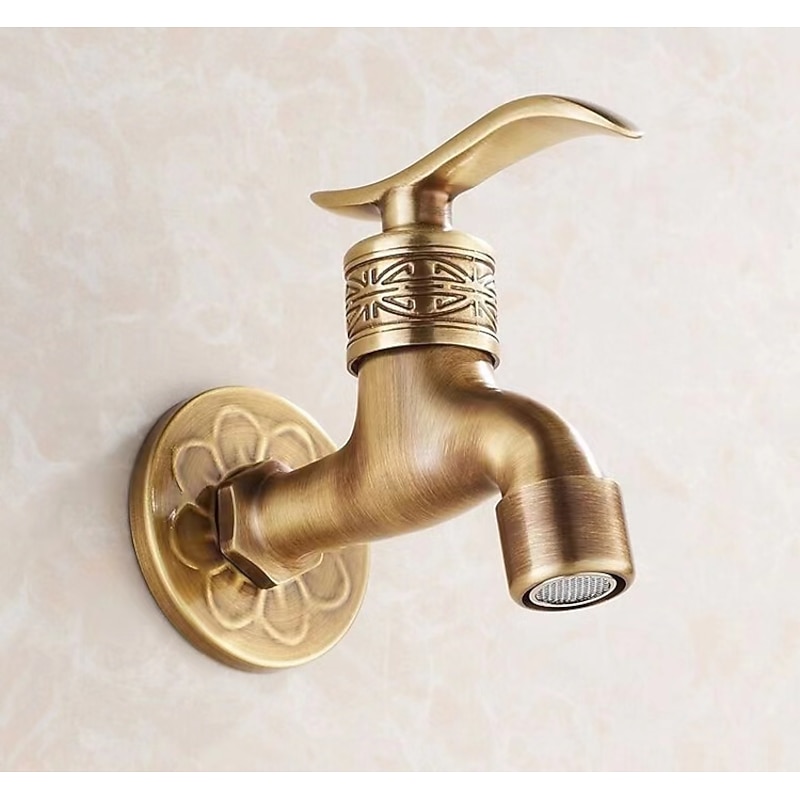 Outdoor Faucet,Wall Mount Antique Brass Faucet,Garden Outdoor Decorative Hose 1/2 inch Connection Spigot Carving Desigh with Cold Water Only
