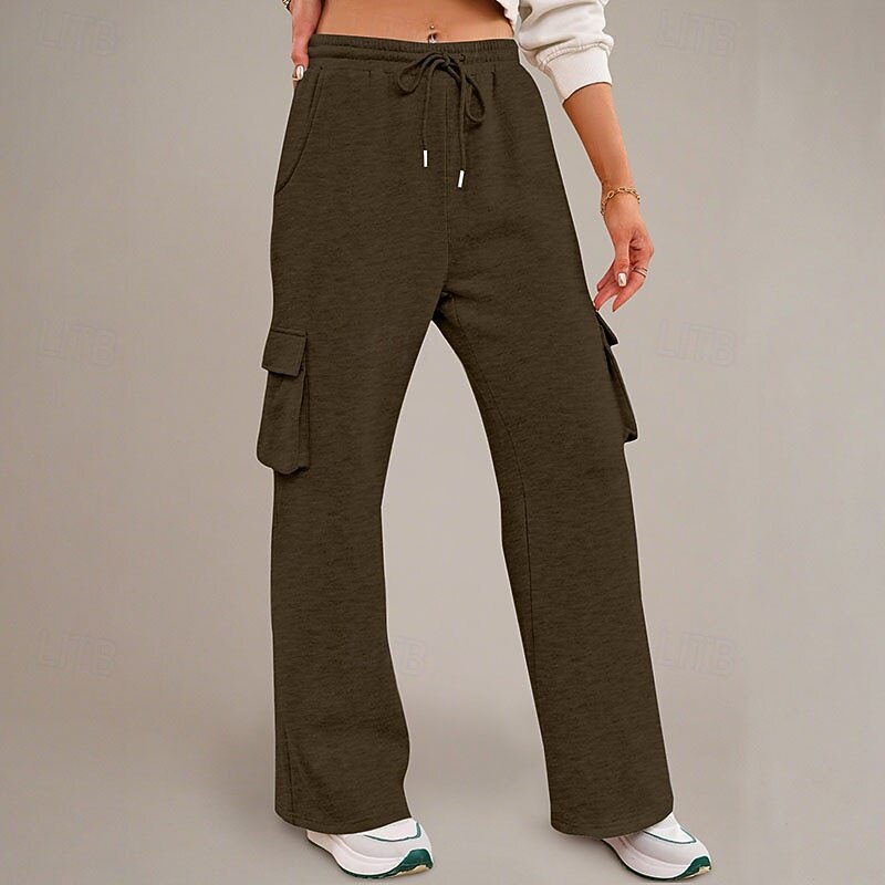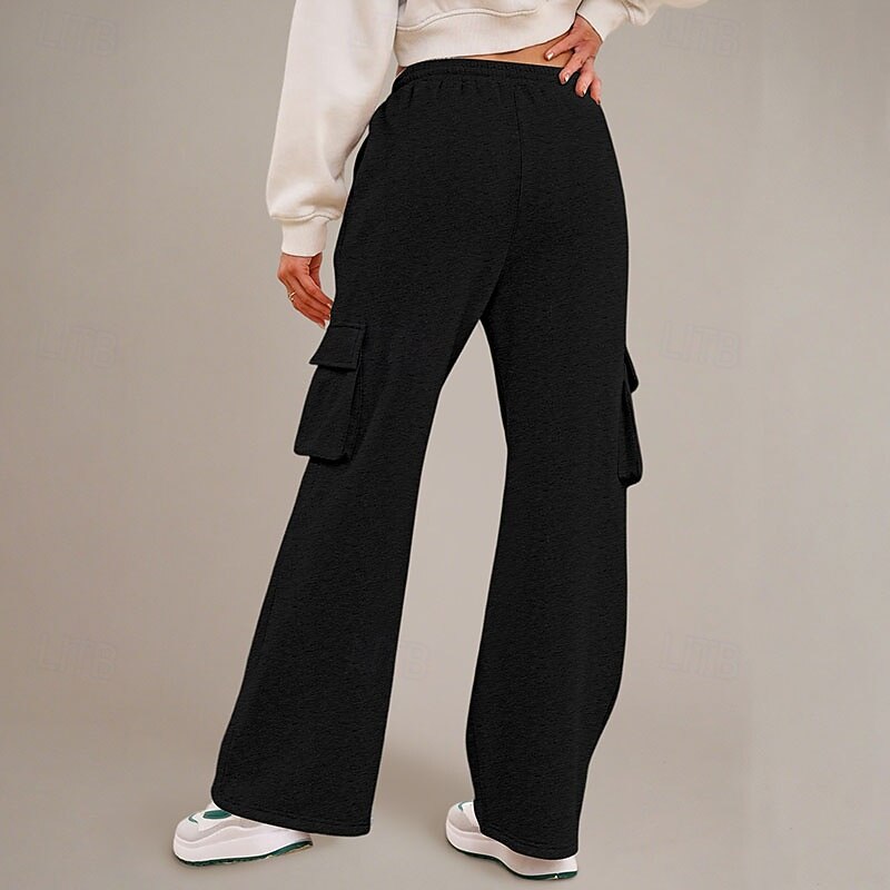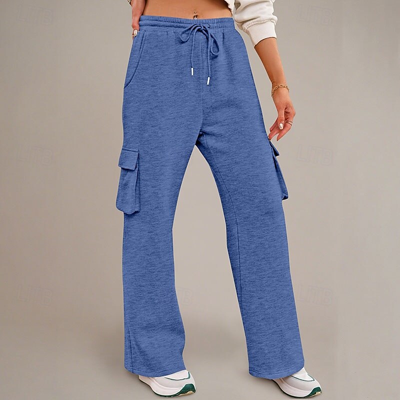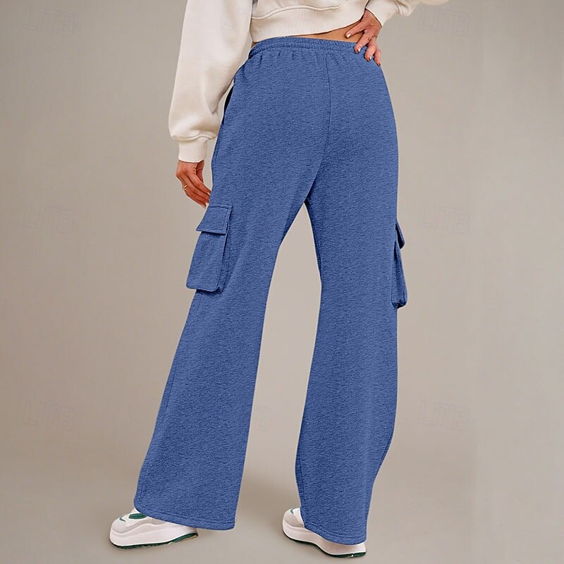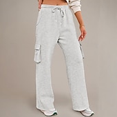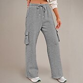More information about Women's Cargo Pants Culottes Wide Leg Chinos Streetwear Casual Full Length Medium Waist Plain Drawstring Pocket Comfortable Micro-elastic Outdoor Vacation Street Black Dark Navy Royal Blue Light Grey