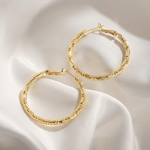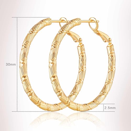 HOT ! Gold Hoops Earrings for Women 14K Gold Earring Thick Hoop Earring for Womens Earrings Solid Line Cutting Design 30mm