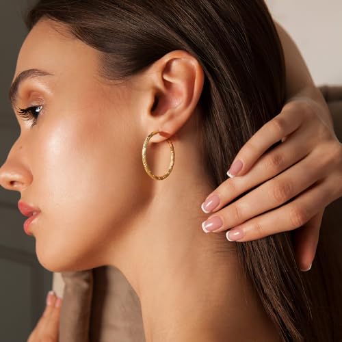 Gold Hoops Earrings for Women 14K Gold Earring Thick Hoop Earring for Womens Earrings Solid Line Cutting Design 30mm 5