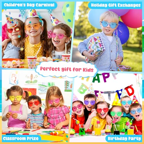 • Multi-Event Styling Essential: From pool parties to classroom carnivals, these kids heart sunglasses elevate every occasion: summer festivals, beach days, Children's Day parades, birthday bashes, and holiday gift exchanges. Mix-n-match colors for creative outfits.