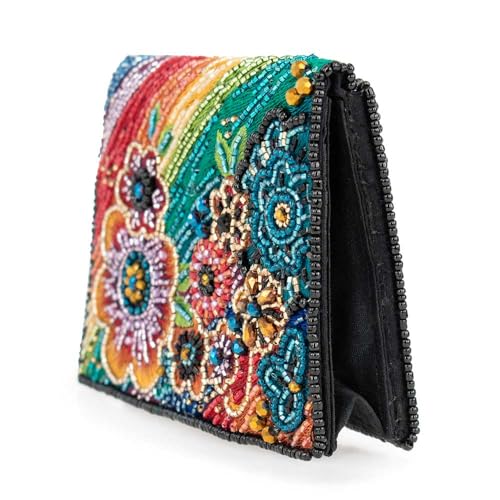 Mary Frances Wonderland Beaded Wallet Mini Clutch Purse with Rainbow Floral Design Multiple Compartments, Multicolor 1