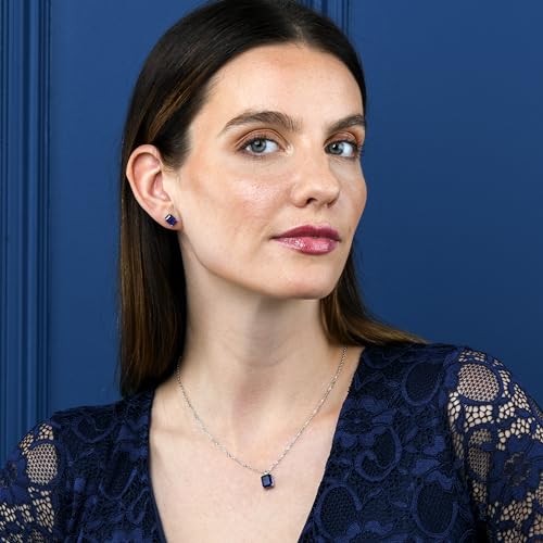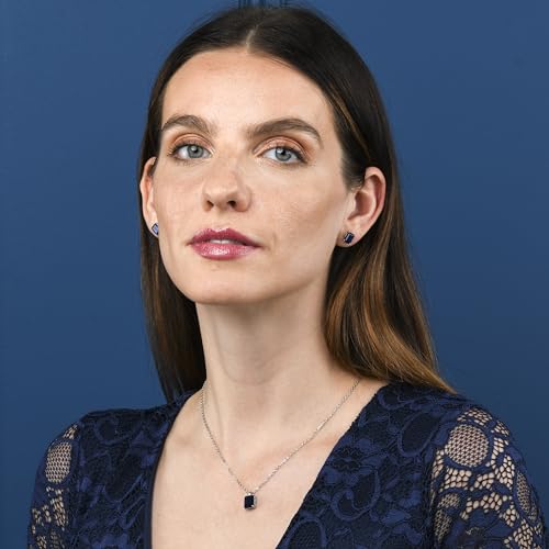 • 925 Sterling silver necklace for women with a rectangle blue pendant. Simple stone necklaces for women with an 8mm by 10mm Emerald-cut blue cubic zirconia stone.
