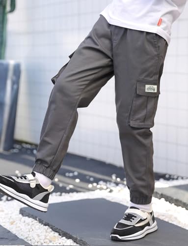 AUBIG Boys Cargo Joggers Pants Elastic Waist Casual Jogging Trousers Bottom for Kids Hiking School Sweatpants 5-16 Years 4