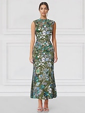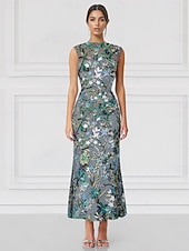 More information about Mermaid / Trumpet Cocktail Dresses Embroidered Elegant Formal Wedding Guest Floor Length Sleeveless High Neck Sequined with Glitter