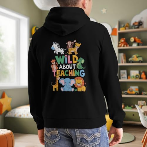 HOT ! Kids Retro Wild About Teaching School Teacher Boys Girls Lightweight Kangaroo Pocket Fleece Hoodies