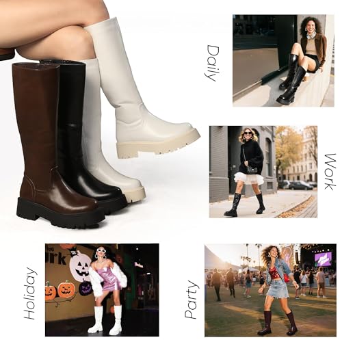 • QUALITY & DURABLE MATERIALS: Crafted from premium faux leather, these knee high boots are made with mindful materials that are both easy to care for and built to last. The PU upper and soft lining ensure long-lasting wear, making these lug sole boots a go-to for every season.