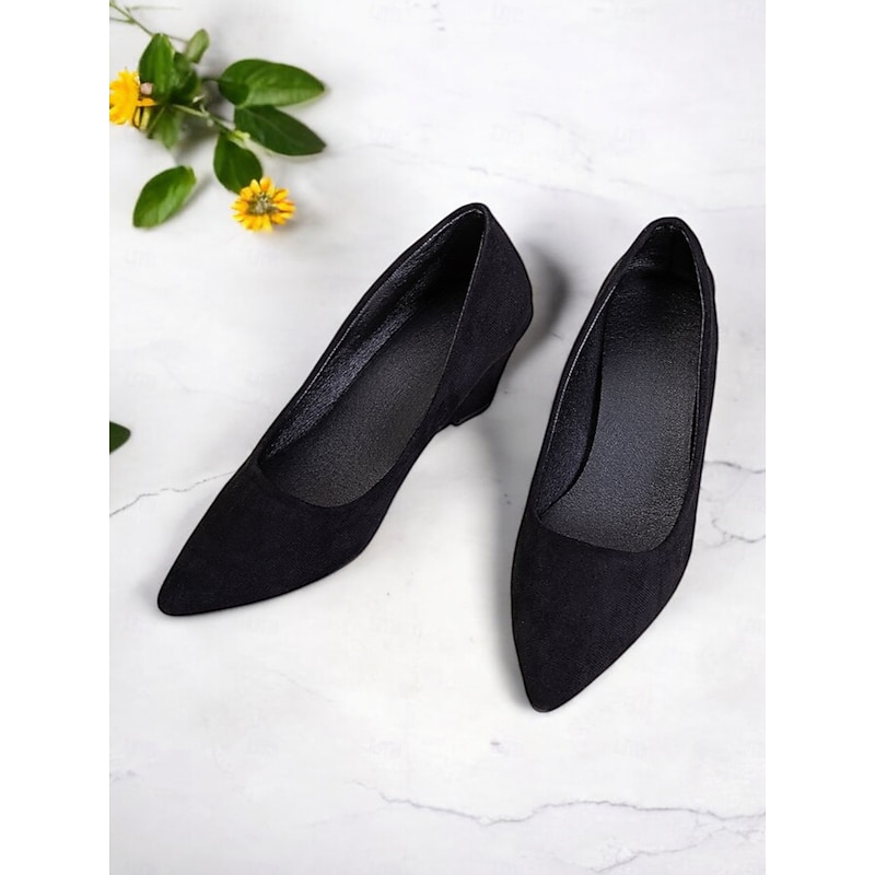 Women's Black Faux Suede Pointed Toe Wedge Pumps - Elegant and Comfortable Shoes for Office Wear and Formal Events 1