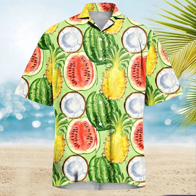 More information about Men's Fruit Cherry Summer Hawaiian Shirt Aloha Shirt Short Sleeves Shirt Turndown Casual Outdoor Vacation Street Yellow Red Green S M L