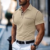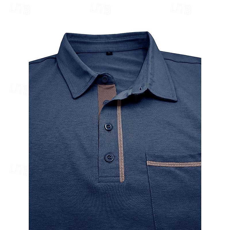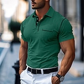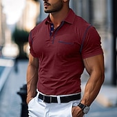More information about Men's Cotton Polo Shirt Golf Shirt Work Casual Lapel Short Sleeve Basic Modern Color Block Patchwork Button Spring & Summer Regular Fit Army Green Lake blue Forest Green Black White Burgundy Cotton