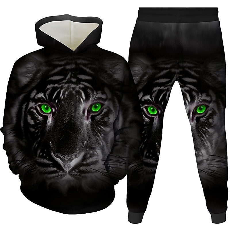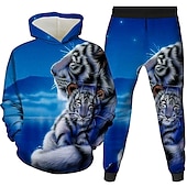 Unisex 3D Graphic Tiger Hoodie & Pants Pants Set Hoodie Set Long Sleeve Spring Fall Winter Sports Daily Polyester Kids 3-12 Years Outdoor Sports Loose Fit 1