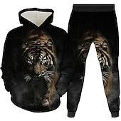 HOT ! Unisex 3D Graphic Tiger Hoodie & Pants Pants Set Hoodie Set Long Sleeve Spring Fall Winter Sports Daily Polyester Kids 3-12 Years Outdoor Sports Loose Fit