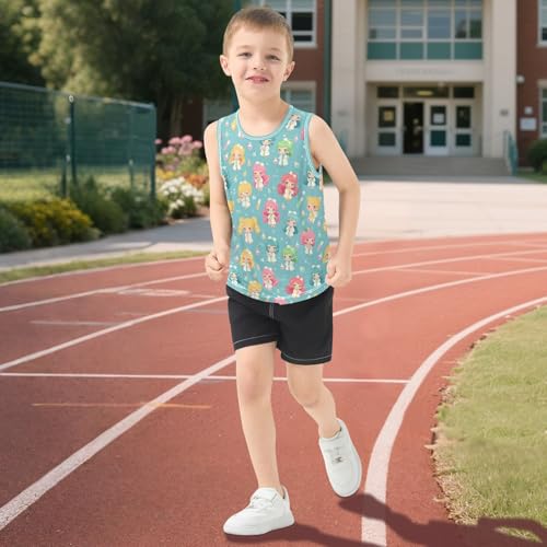 Boys Tank Top Shirts Chibi Style Kawaii Colorful Sleeveless T-Shirts Crew Neck for Kids Clothing Children 5