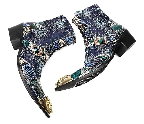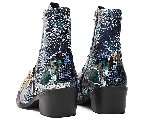 Santimon Mens Dress Casual Western Cowboy Boots - Genuine Leather Mid Top Boots with Shining Sequins & Metal Wingtip Toe for Ballroom Disco Party 7