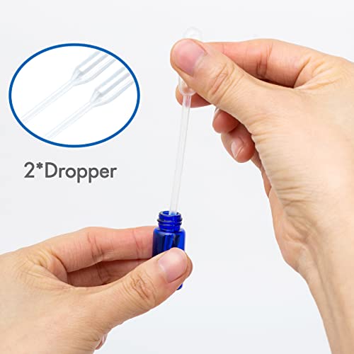 ZEJIA 3ml Roller Bottles 24Pack Cobalt Blue Thick Glass Essential Oil Bottles with Stainless Steel Roller Ball and 2 Droppers 4