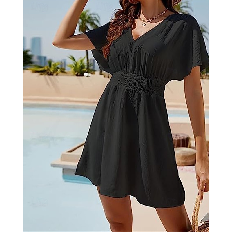 More information about Women's Mini Dress White Dress Casual Dress Summer Dress Fashion Batwing Sleeve Outdoor Holiday Date Regular Fit Plain Short Sleeve V Neck Black White Summer Spring