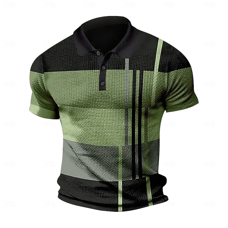 Men's Waffle Polo Shirt Golf Shirt Casual Date Lapel Short Sleeves Fashion Plaid / Striped / Chevron / Round Print Summer Dry-Fit Yellow Pink Red Blue Light Purple Orange Waffle Polo Shirt 19