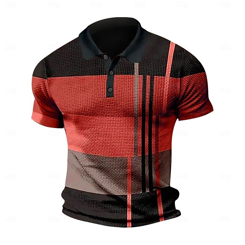 Men's Waffle Polo Shirt Golf Shirt Casual Date Lapel Short Sleeves Fashion Plaid / Striped / Chevron / Round Print Summer Dry-Fit Yellow Pink Red Blue Light Purple Orange Waffle Polo Shirt 1