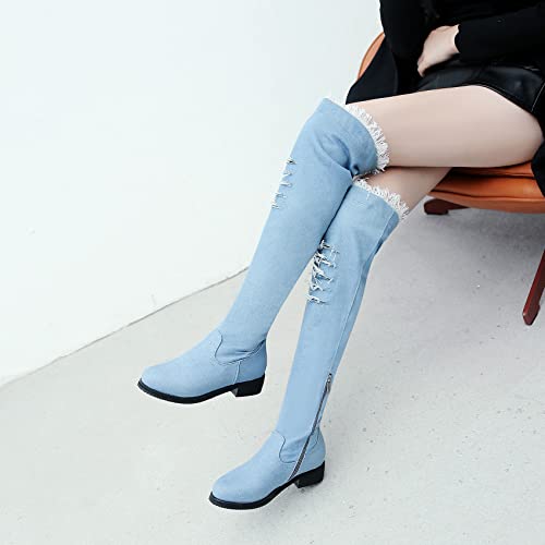 Bellirala Womens Denim Thigh High Boots Flat Over The Knee Boots Side Zipper 6