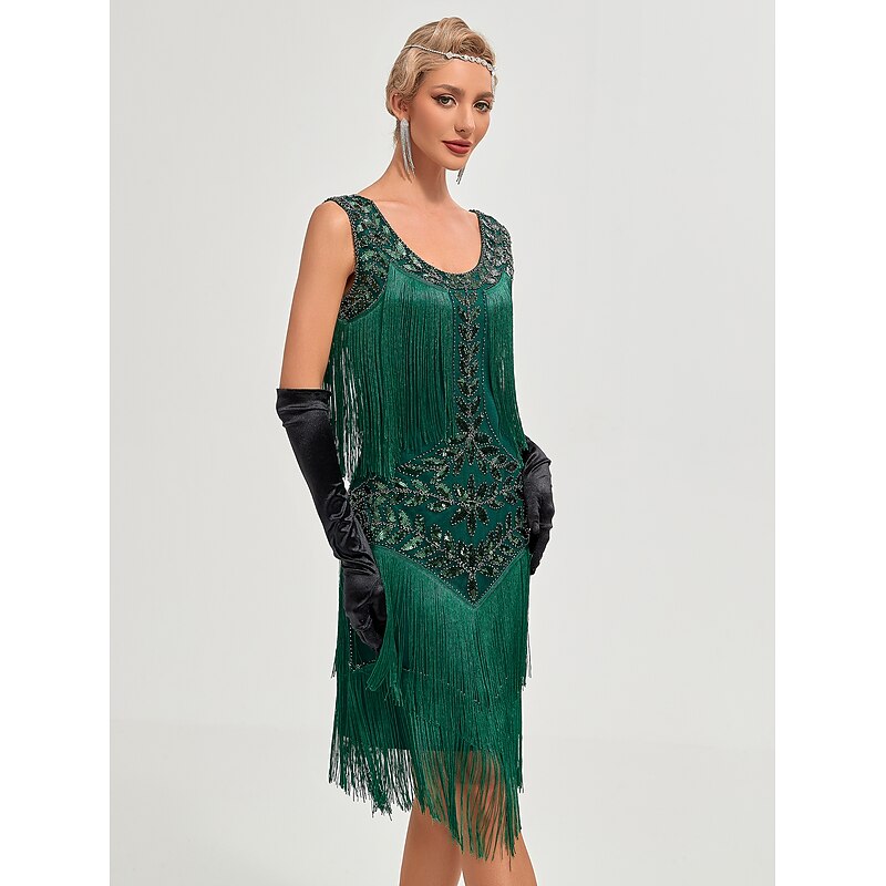 More information about Sets with Flapper Dress Feather Headband Gloves Necklace 4 PCS Roaring 20s 1920s Cocktail Dress Masquerade The Great Gatsby Sequins Tassel Fringe Costumes Women's Attire Christmas Party