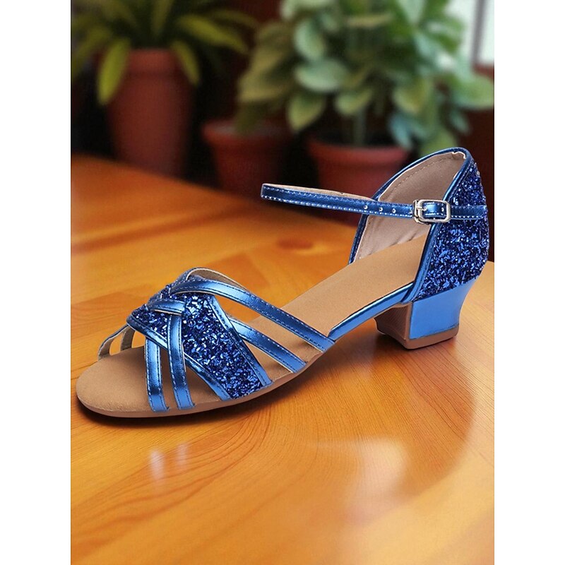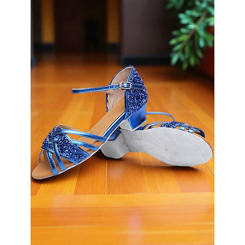 Women's Gold Glitter Latin Dance Shoes with Low Block Heel, Ankle Strap, Open Toe - Professional Ballroom Performance Footwear for Competitions and Practice 17