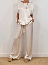 More information about Women's Active Fashion Blouse Pants Sets Short Sleeve Crew Neck Solid Color Going out Weekend Black Blue Beige Summer Regular Fit