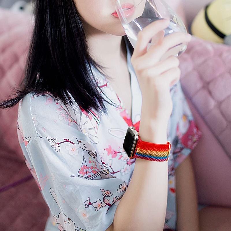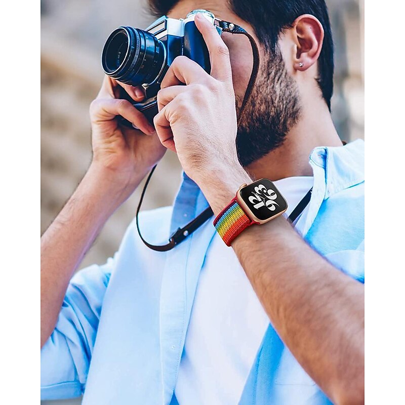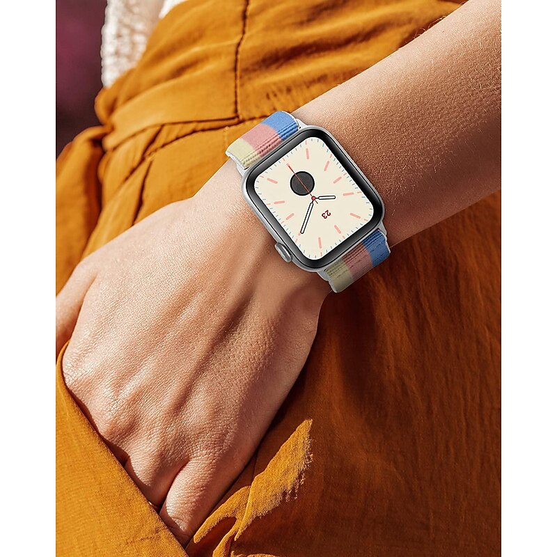 Highlights Product Selling Points: - Made with high-quality nylon fabric and a stainless steel buckle - Elastic design for a comfortable fit - Compatible with Apple Watch SE Series Ultra/Ultra2 9 8 7 /6/ 5/4/3/2/1 - Available in sizes 41mm=40mm=38mm and 45mm=44mm=42mm=49mm - Lightweight and comfortable to wear - Easy to put on without dealing with a clasp - Stain-resistant and easy to clean by hand - Fashionable, simple, durable, and elegant design