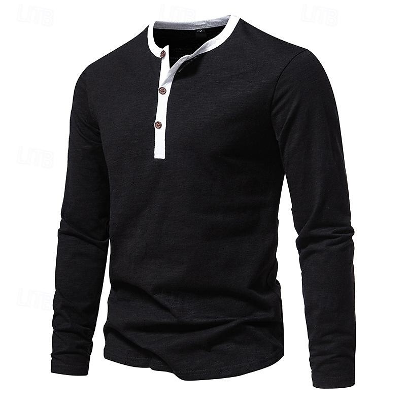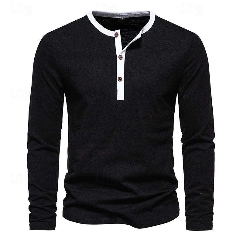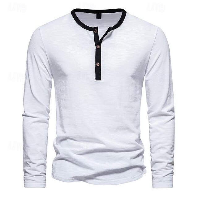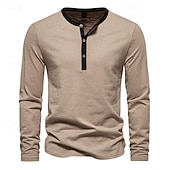 More information about Men's Button T Shirt T Shirt Henley Shirt Tee Long Sleeve Henley Spring & Fall Plain Fashion Designer Basic Vacation Street Going out Black White Khaki Top Tee for Men