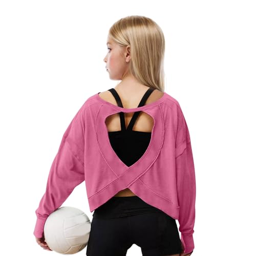Girls Open Back Tops Long Sleeve Oversized Workout Shirts Kids Backless Gym Yoga Athletic Running Tees 4-14 Years 5