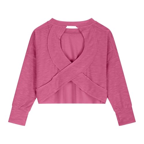 Girls Open Back Tops Long Sleeve Oversized Workout Shirts Kids Backless Gym Yoga Athletic Running Tees 4-14 Years 7