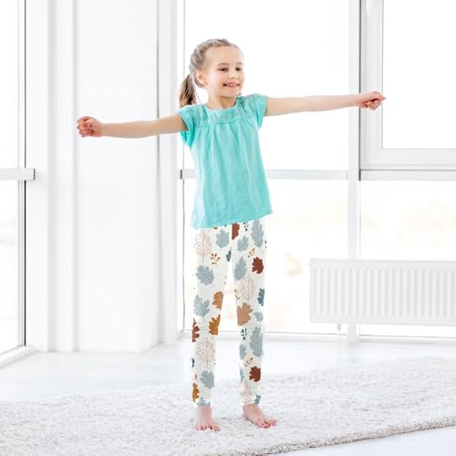 Red Blue and Orange Maple Leaves Pattern Girls Leggings Soft Stretch Workout Yoga Dance Pants for Kids Casual Tights 7