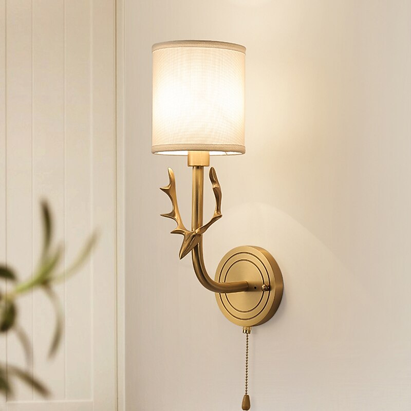 Wall Lamp Antique Wall Sconces for Bedroom Corridor Nordic Fabric Night Light Wall Mounted Antler Lighting Fixtures Brass 1