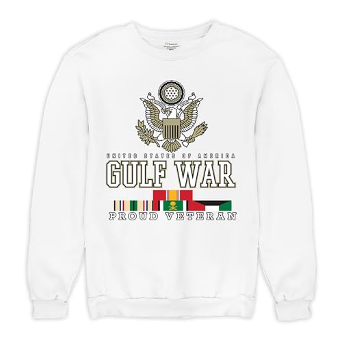 • GREAT FIT: This sweatshirt feels great and fits true to size. Gulf War Proud Veteran crewneck sweatshirt for men and women is a perfect gift. Great present for dad, husband, son, boyfriend, grandpa, mom, wife, daughter, or grandma. Please check our store for a funny, Christmas, political, military, patriotic, Christian, humor, pop culture, sarcastic, men's novelty t-shirt, women's novelty t-shirt, or clothing that makes a statement.