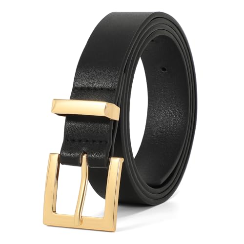 XZQTIVE Women's Leather Belts for Jeans Pants Dresses Fashion Ladies Belt with Square Buckle Black Belt for Women 5